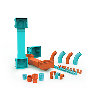 好线配好管,高效施工从这里开始。中财如意电工套管系统,针对传统产品及施工的痛点,推出一系列高效、便捷的产品九游官网官方入口_九游(中国),。活力橙和梦幻蓝的鲜明色彩,打破强弱电的传统红蓝配色,为电工安装注入全新视觉感受。