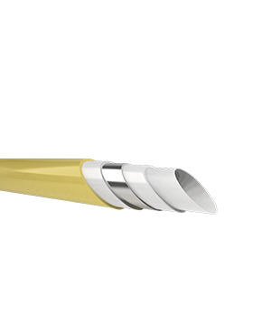 管材五层结构设计,拥有三道承压层,内管层、铝层、外管层构成三道强大防线,抗压性更强,耐压更安全;通过对管材结构和材料的改进,显著提高管材低温抗冲性能,在-5℃情况下受到外力重击,扁而不破;同质热熔连接且无需剥皮,接头牢靠不渗漏,省去稳态管连接施工剥皮的繁杂工序,让施工连接更加省时省力。普通PPR塑料管在连接时焊口内翻边较大,易形成缩径,影响水流量,中财SW稳态管在焊接时内翻边较小,不会影响管内水流状态;采用道达尔公司的高品质材料,产品拥有更优越的长期耐高温抗高压性能,可放心使用。