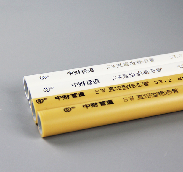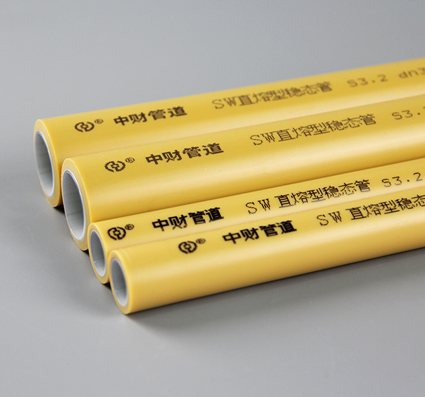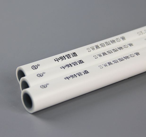 管材五层结构设计,拥有三道承压层,内管层、铝层、外管层构成三道强大防线,抗压性更强,耐压更安全;通过对管材结构和材料的改进,显著提高管材低温抗冲性能,在-5℃情况下受到外力重击,扁而不破;同质热熔连接且无需剥皮,接头牢靠不渗漏,省去稳态管连接施工剥皮的繁杂工序,让施工连接更加省时省力。普通PPR塑料管在连接时焊口内翻边较大,易形成缩径,影响水流量,中财SW稳态管在焊接时内翻边较小,不会影响管内水流状态;采用道达尔公司的高品质材料,产品拥有更优越的长期耐高温抗高压性能,可放心使用。